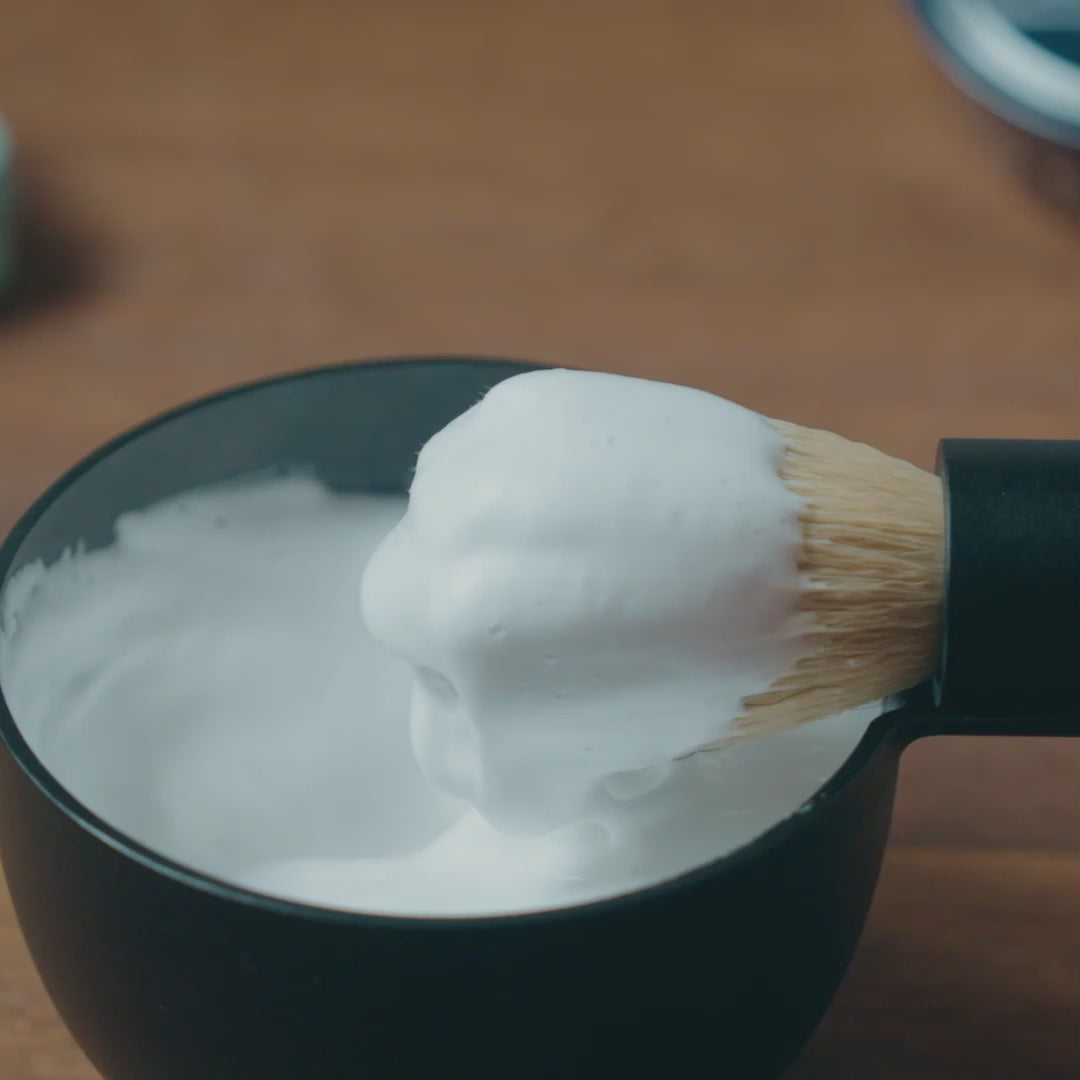 A shaving brush and bowl create a dense, creamy lather that softens facial hair, preps the skin for a smoother shave, and enhances the overall grooming experience.